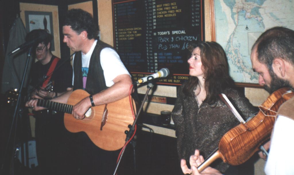Hedgepig played various support slots at The Boat Race, including for Rock, Salt and Nails and Pagan Billy. The latter gig was a particularly wonderful night for two well-matched local folk bands, who should really have done more together. The evening was also particularly busy for Mr. Lemon - who was then Pagan Billy’s mandolin and fiddle player. The band, and particularly Steve White, learned much about stagecraft from observing Rock, Salt and Nails. As well as playing other local pubs, including The Castle Inn, the band also first ventured out of the county to play at a pub re-opening in Colchester. In addition, they were the first band in over 400 years (since the market was established in Cambridge) to play on the Cambridge Market – for National Markets Day in May 1996.